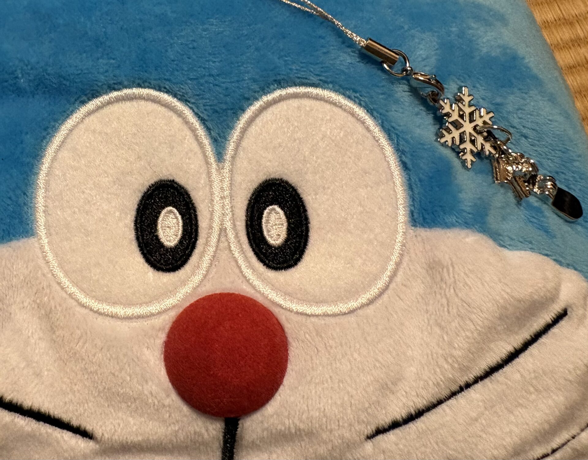 UFOキャッチャーで次女がゲットしてくれたドラえもんのぬいぐるみと一緒にパシャリ。