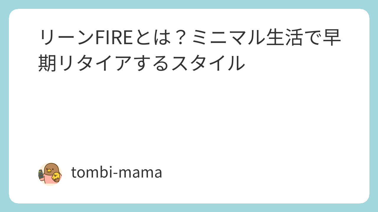 今日はFIREの4種類のひとつ、リーンFIREについて。