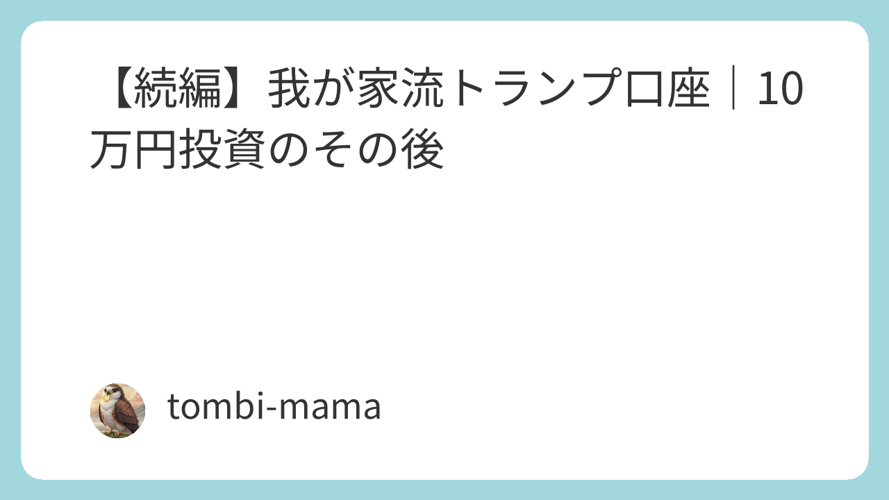 さて、我が家流のトランプ口座(10万円プロジェクト)はというと、