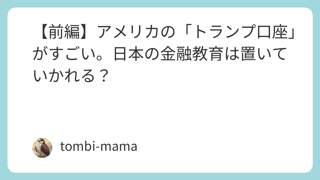 【前編】アメリカの「トランプ口座」がすごい。日本の金融教育は置いていかれる?