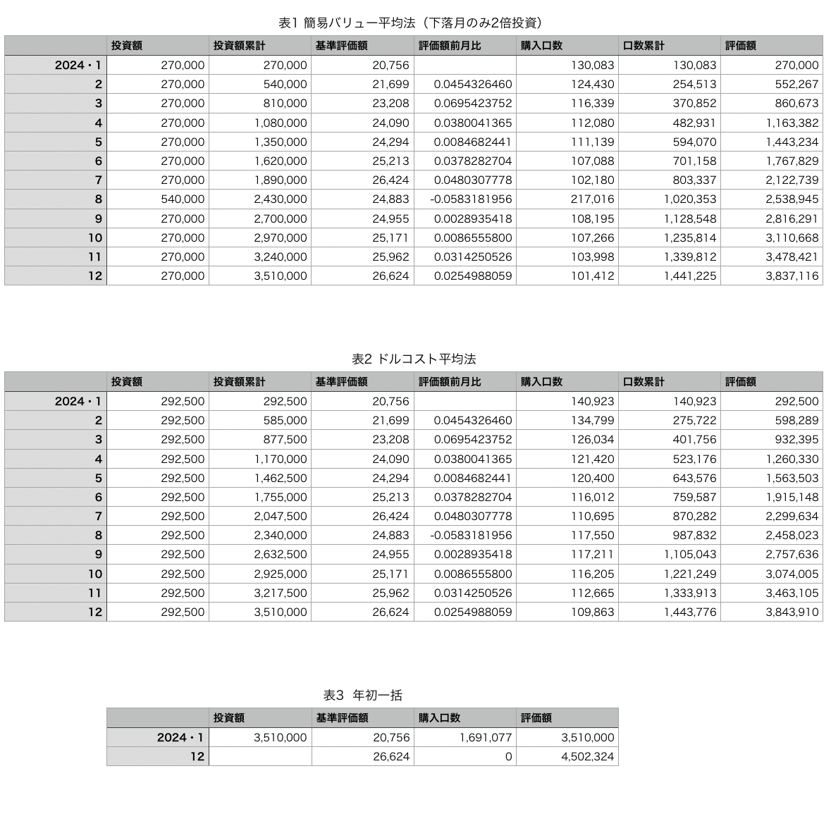 なるほど!確かに、上昇相場では「一括>ドルコスト平均法>バリュー平均法」になりやすいわけです。